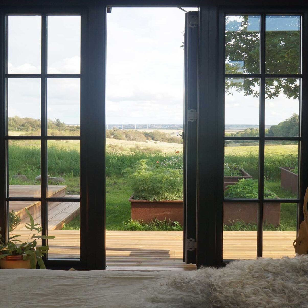 I indretningen af huset har jeg bestræbt mig på at afspejle naturen udenfor og det er virkelig mit håb, at du under dit ophold her vil opleve det som et lille fristed og måske netop få en oplevelse af den ro og det nærvær, som det særlige landskab har det med at kalde frem, ja, måske ligefrem vil opleve en følelse af samhørighed og indfældethed i den storslåede natur, vi her er omgivet af.