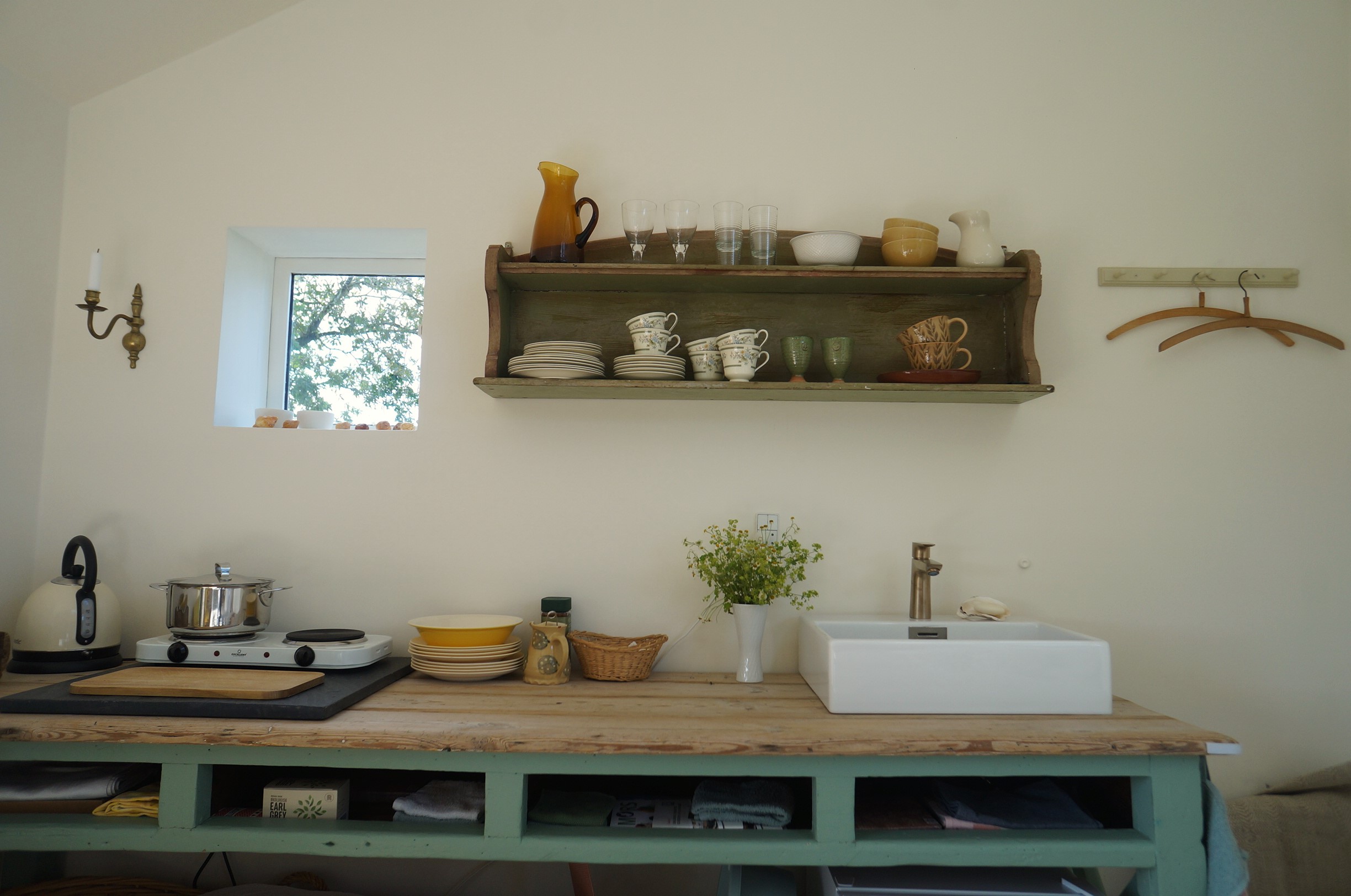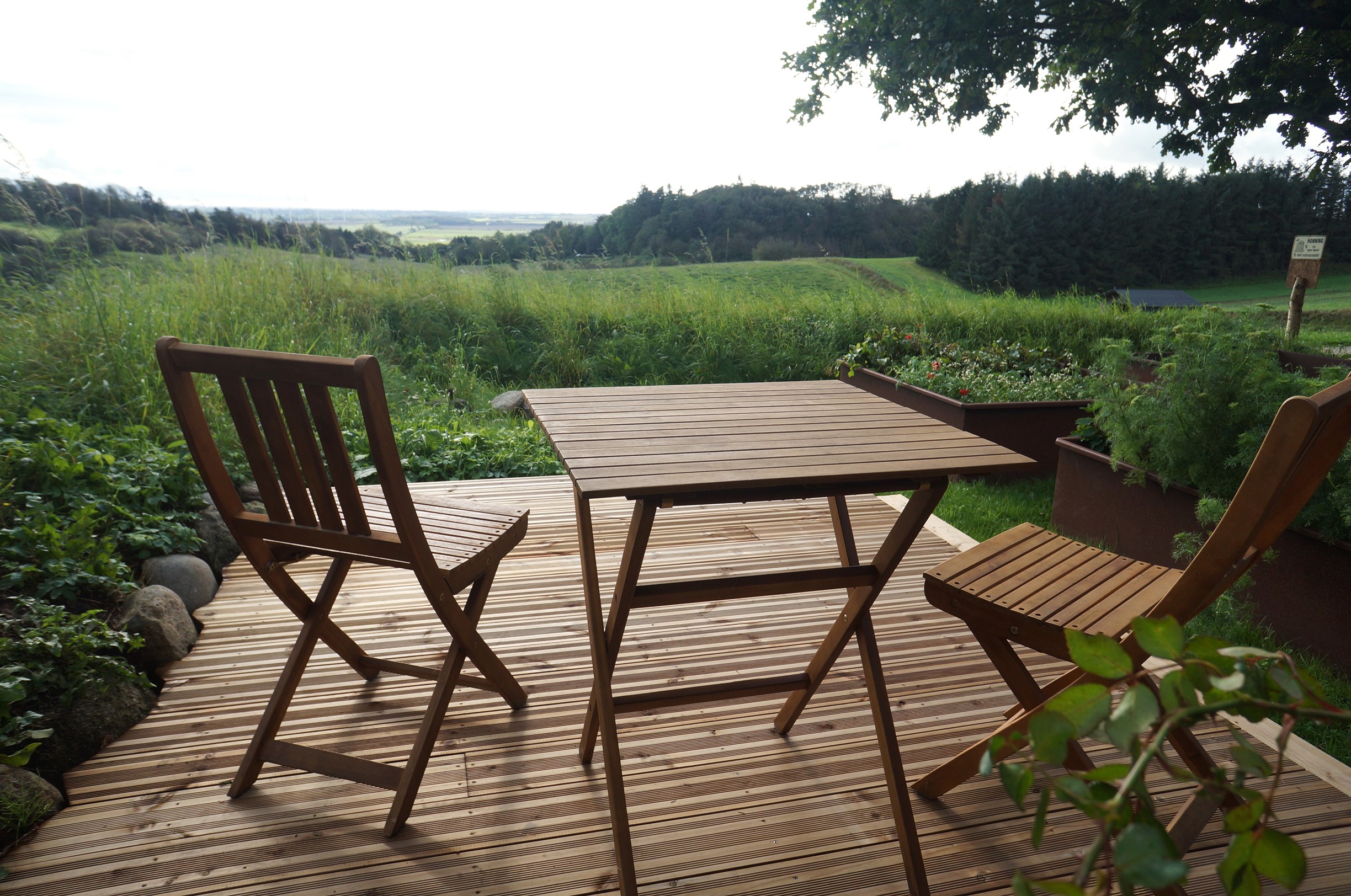 Det lille hus er nyligt istandsat og ombygget til en lille bolig med egen terrasse. Herfra har du det smukkeste udsyn over et ganske særligt landskab.