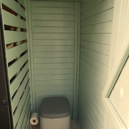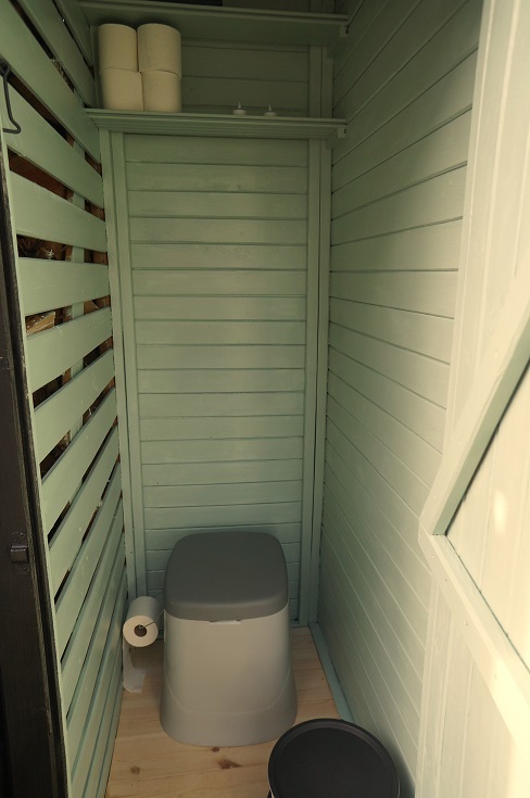 Toilettet udgøres af et såkaldt ‘das’. – Lidt primitivt, men dog enkelt og velfungerende … ikke mindst om sommeren. – Om vinteren kan det jo være en lidt kølig oplevelse; til gengæld kan du efterfølgende komme ind til en varm brændeovn.